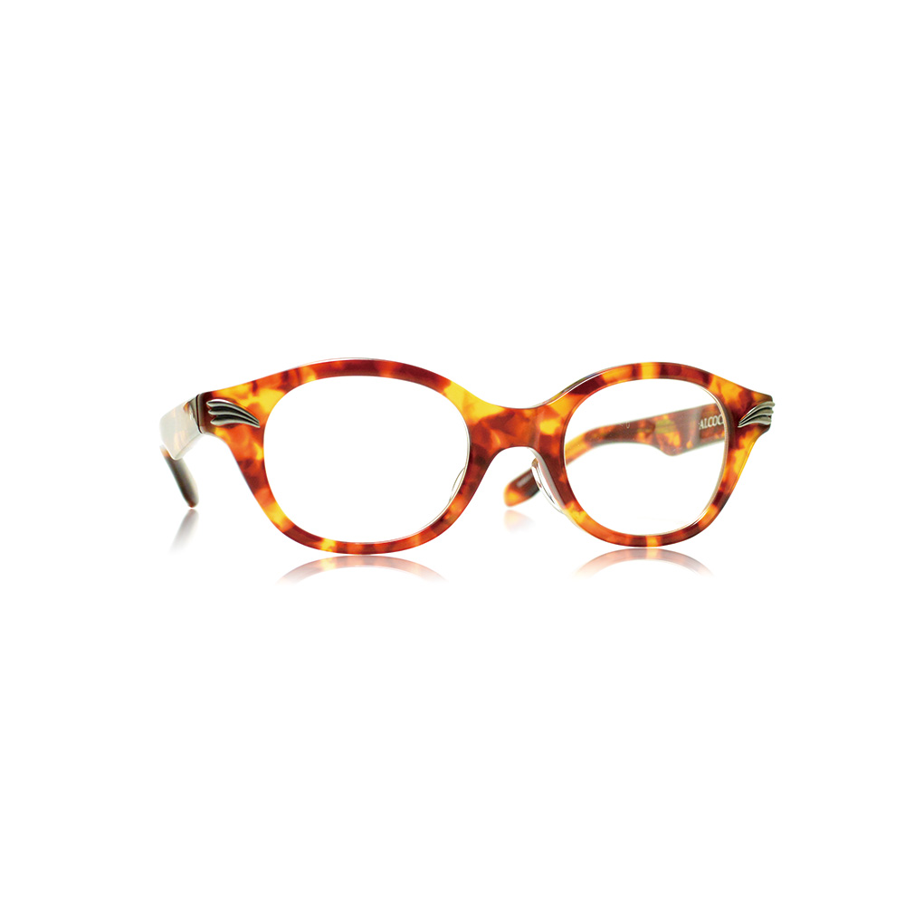 ALCOCK is the model which started GROOVER’s tendency for dissonance style design. This unique wide outline and round, yet square shape lense, were born by mere coincidence.